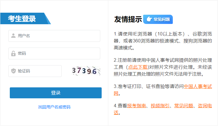 第二步:進入全國專業(yè)技術(shù)人員資格考試報名服務(wù)平臺,輸入用戶名、密碼、驗證碼,進入系統(tǒng)。