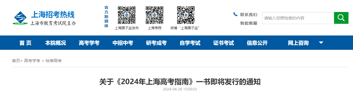 從上海市教育考試院獲悉,2024年上海高考指南一書即將發(fā)行的通知已公布,4月28日出版,具體詳情如下: