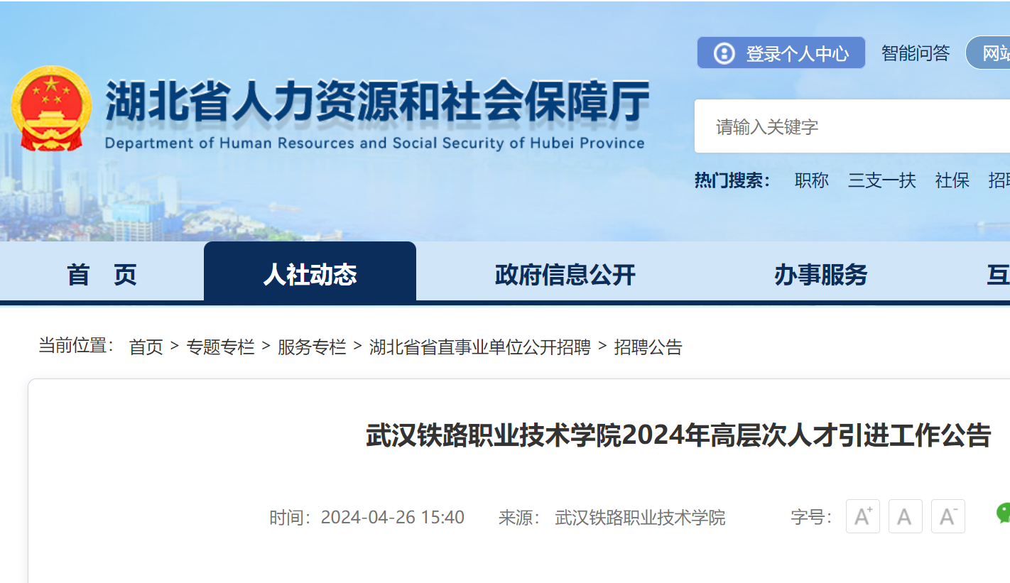 2024年湖北武漢鐵路職業(yè)技術(shù)學(xué)院高層次人才引進(jìn)工作公告已發(fā)布,報(bào)名時(shí)間:自公告發(fā)布之日起至2024年12月31日,現(xiàn)將招聘公告原文發(fā)布如下: