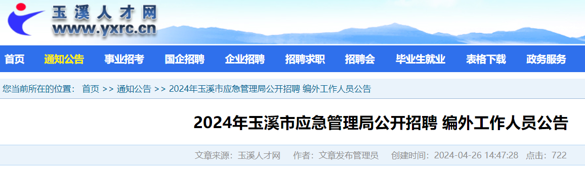 根據(jù)玉溪市應(yīng)急管理局工作需要,現(xiàn)委托云南辰信人力資源管理咨詢有限公司面向社會(huì)公開招聘編外工作人員5名,現(xiàn)將有關(guān)事項(xiàng)公告如下: