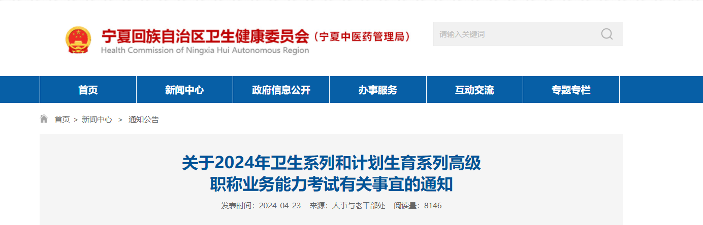 從寧夏回族自治區(qū)衛(wèi)生健康委員會(huì)獲悉,2024年寧夏衛(wèi)生系列和計(jì)劃.生育系列高級(jí)職稱(chēng)業(yè)務(wù)能力考試事宜通知已公布,4月23日起報(bào)名,具體詳情如下: