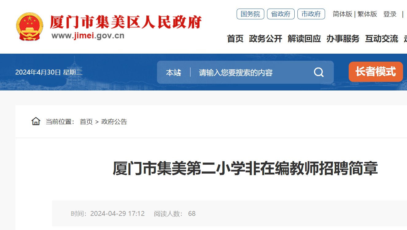 2024福建廈門市集美第二小學(xué)非在編教師招聘簡章已發(fā)布,報名時間:即日起至2024年5月29日(正常上班時間)。現(xiàn)將招聘公告原文發(fā)布如下: