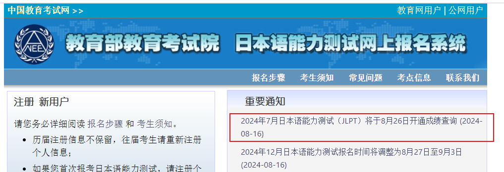 從中國(guó)教育考試網(wǎng)發(fā)布的《2024年7月日本語(yǔ)能力測(cè)試將于8月26日開(kāi)通成績(jī)查詢》得知,2024年7月江西日本語(yǔ)能力測(cè)試成績(jī)查詢時(shí)間及入口已公布,8月26日9時(shí)起查分,具體詳情如下: