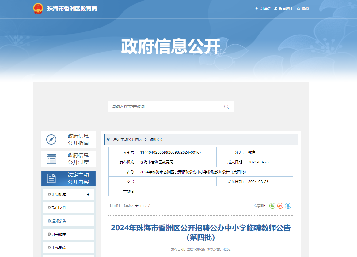 1.具體招聘學(xué)校、崗位、人數(shù)等詳見(jiàn)《2024年珠海市香洲區(qū)公開(kāi)招聘公辦中小學(xué)臨聘教師崗位一覽表(第四批)》(見(jiàn)附件1)。