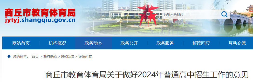 從商丘市教育體育局了解到,河南商丘2024年普通高中招生工作的意見已公布,全市統(tǒng)一填報普通高中志愿的時間為6月11日8:00至6月13日18:00。具體如下: