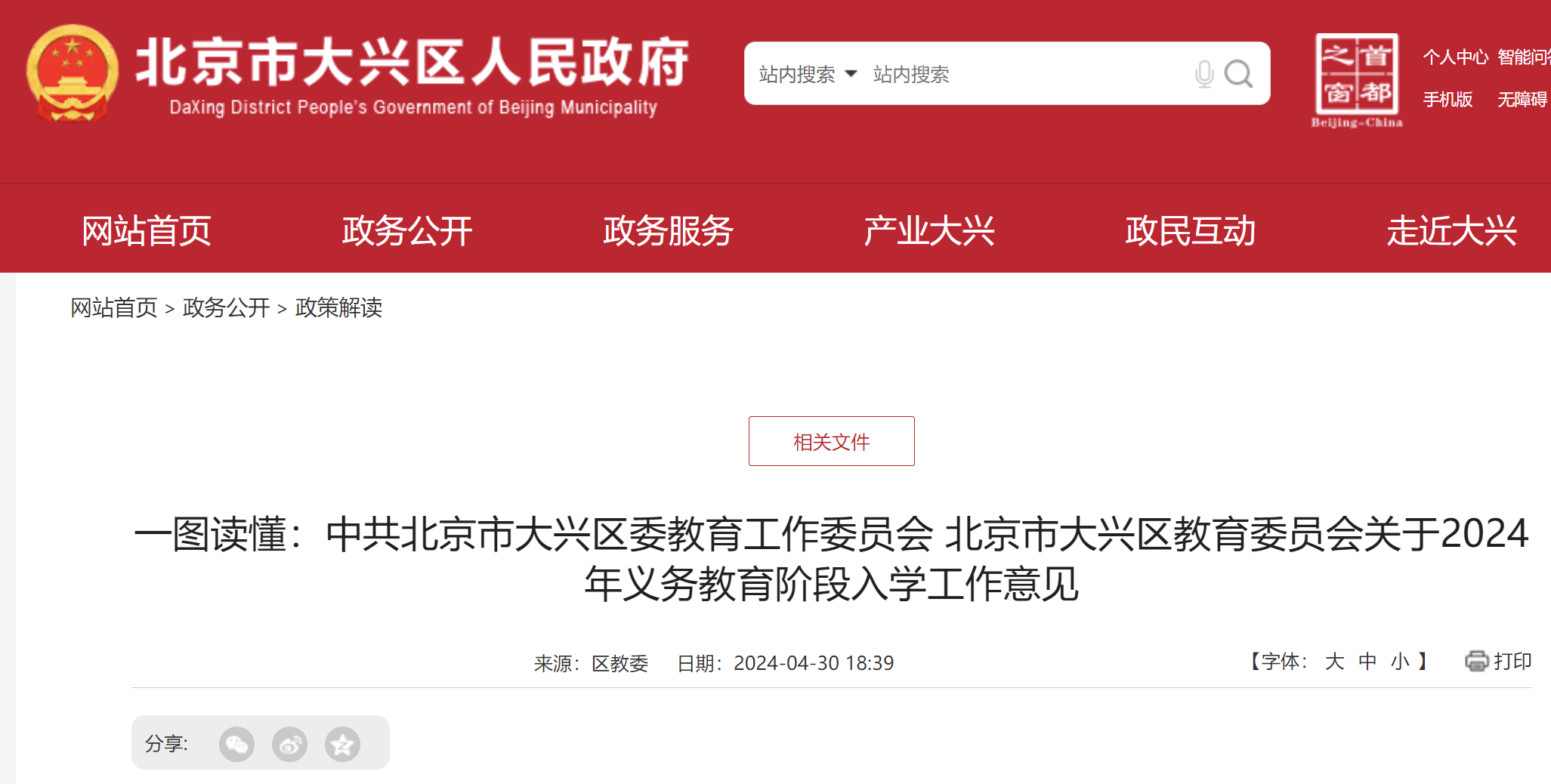 從北京市大興區(qū)教育委員會獲悉,2024年北京市大興區(qū)義務(wù)教育階段入學(xué)工作意見已發(fā)布,請幼升小及小升初考生及家長認(rèn)真閱讀公告內(nèi)容。