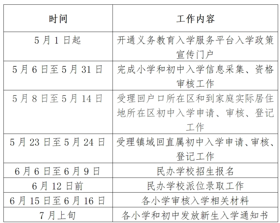 大興區(qū)2024年義務(wù)教育階段入學(xué)工作時間表