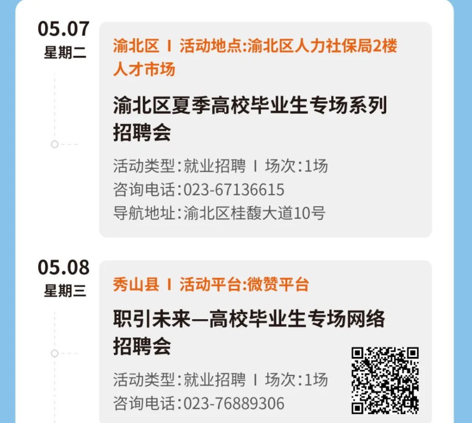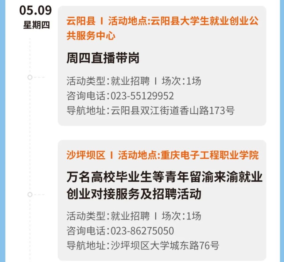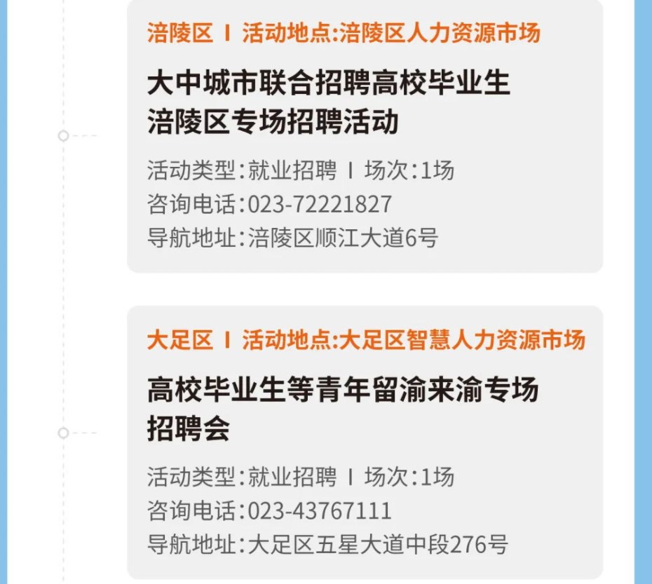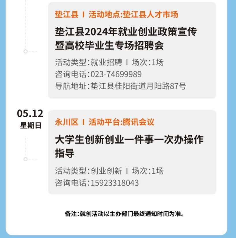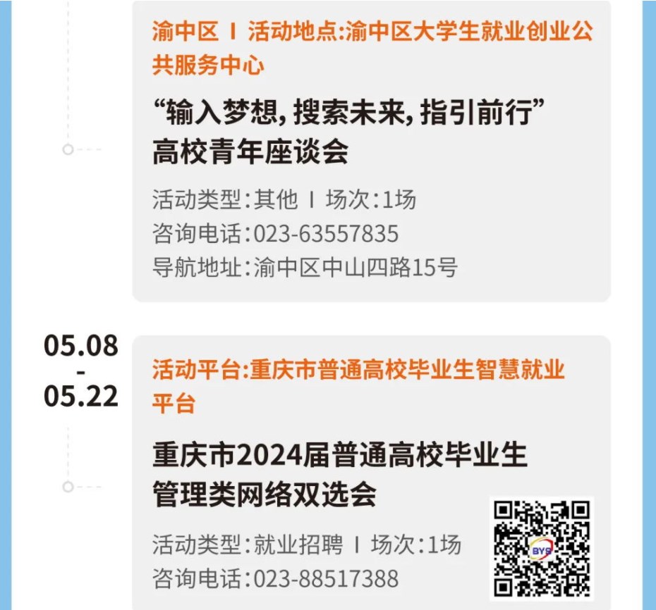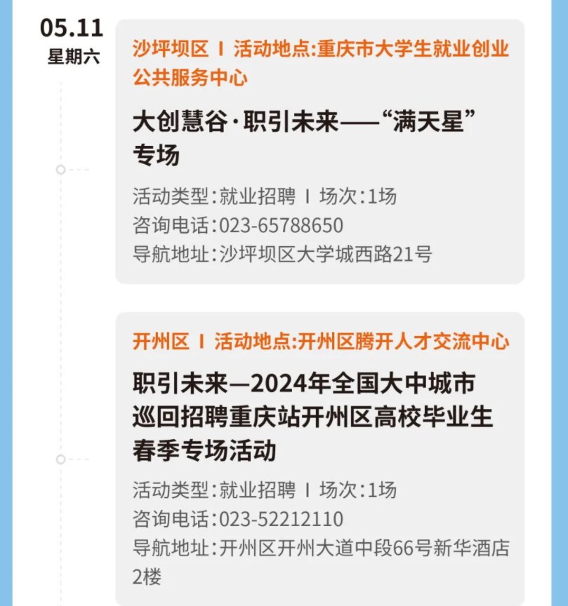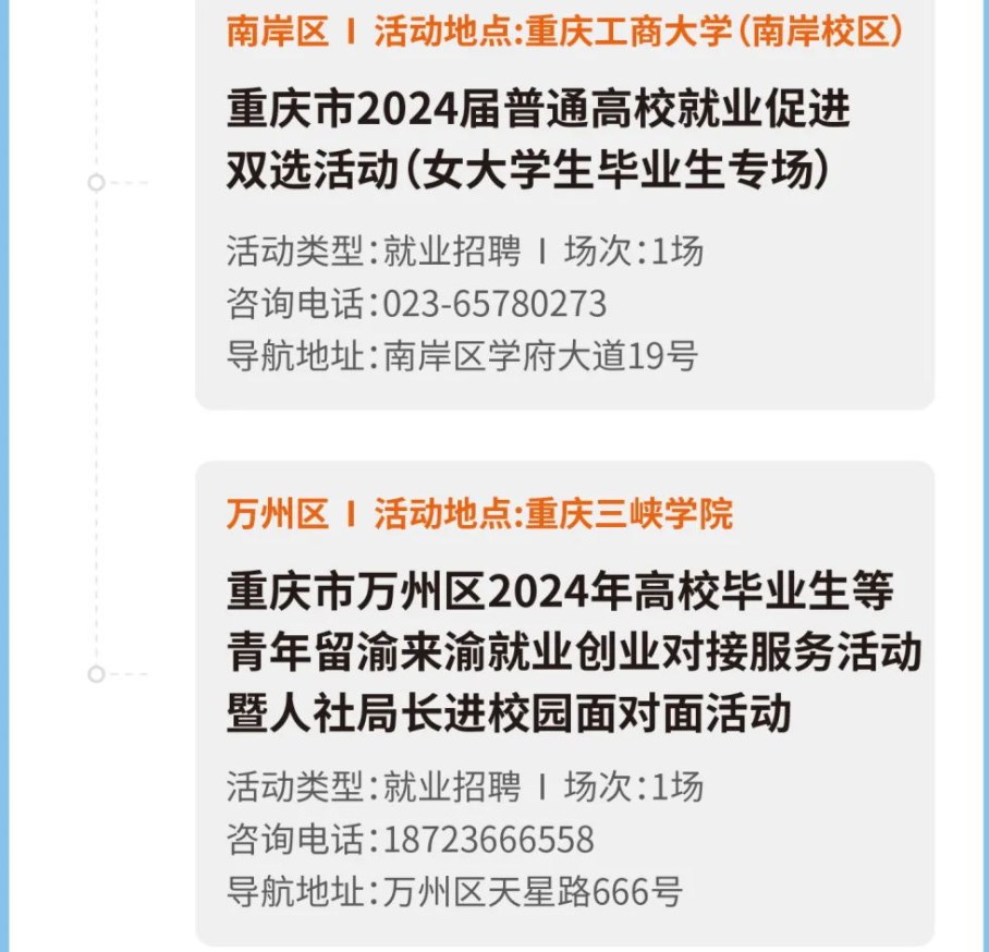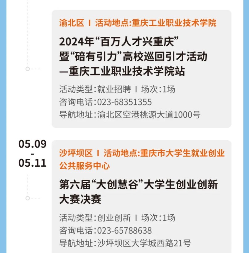 2024年重慶20場(chǎng)大學(xué)生就業(yè)創(chuàng)業(yè)活動(dòng)將于本周舉行,現(xiàn)將原公告公布如下: