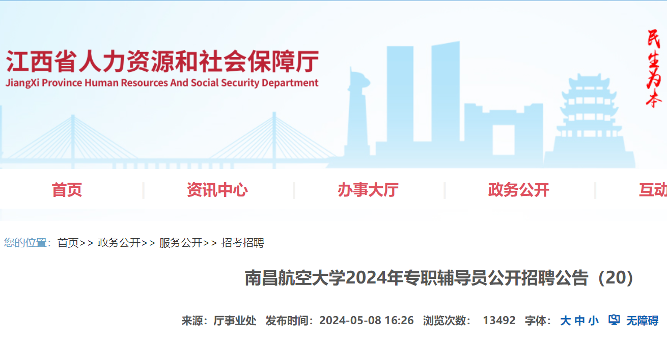 2024年江西南昌航空大學(xué)專職輔導(dǎo)員公開(kāi)招聘公告已發(fā)布,報(bào)名時(shí)間:即日起至2024年5月22日17:30止?,F(xiàn)將招聘公告原文發(fā)布如下: