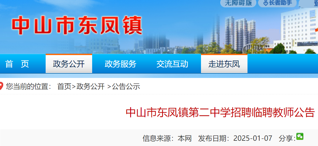 2025年廣東中山市東鳳鎮(zhèn)第二中學(xué)招聘臨聘教師公告已發(fā)布,報名時間:在公告日起至額滿為止?,F(xiàn)將招聘公告原文發(fā)布如下: