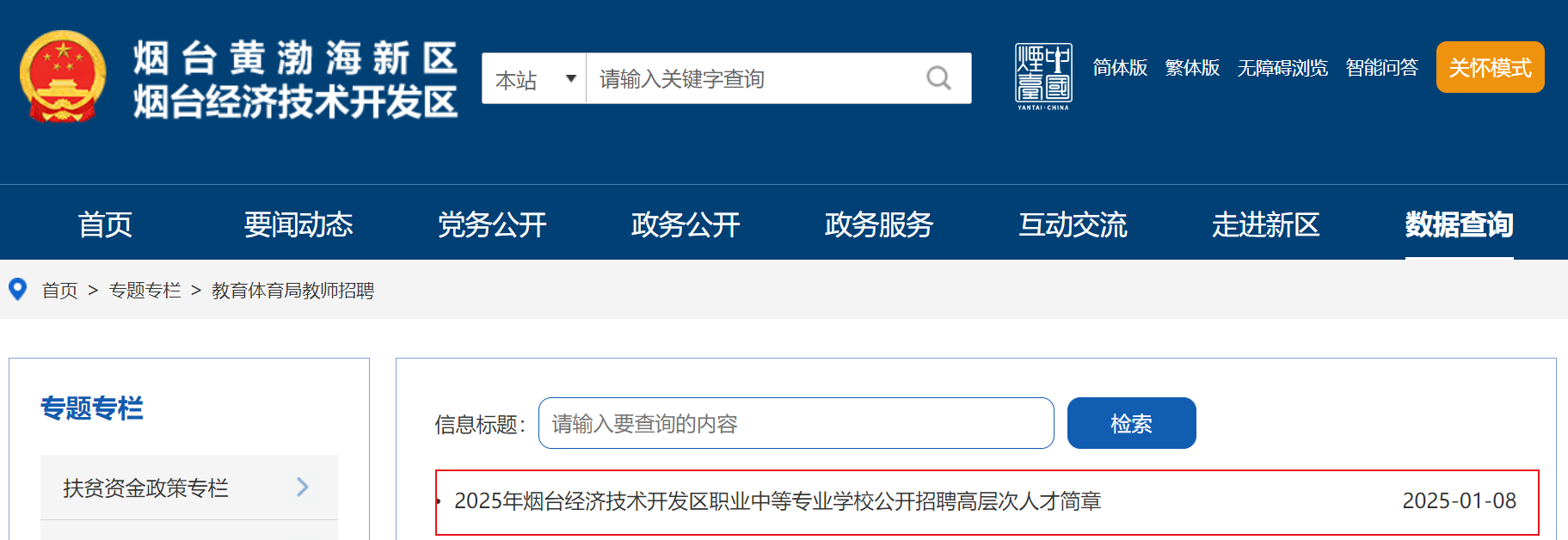 2025年山東煙臺經(jīng)濟(jì)技術(shù)開發(fā)區(qū)職業(yè)中等專業(yè)學(xué)校公開招聘高層次人才簡章已發(fā)布,報(bào)名時(shí)間:2025年1月13日9:00-1月17日16:00?,F(xiàn)將招聘公告原文發(fā)布如下: