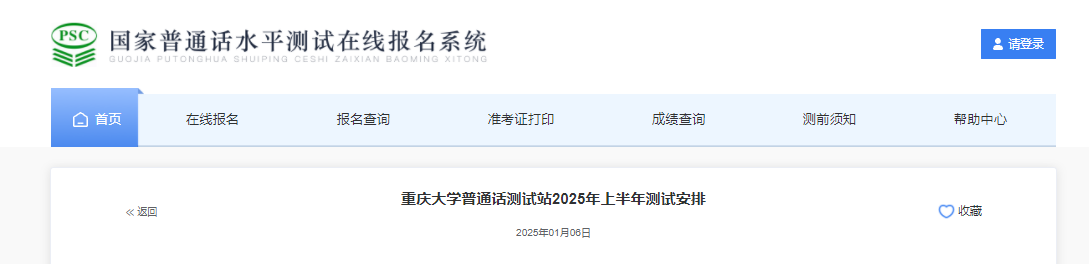 從國(guó)家普通話水平測(cè)試在線報(bào)名系統(tǒng)獲悉,重慶大學(xué)2025上半年普通話考試時(shí)間安排已公布,報(bào)名入口已開(kāi)通,具體詳情如下: