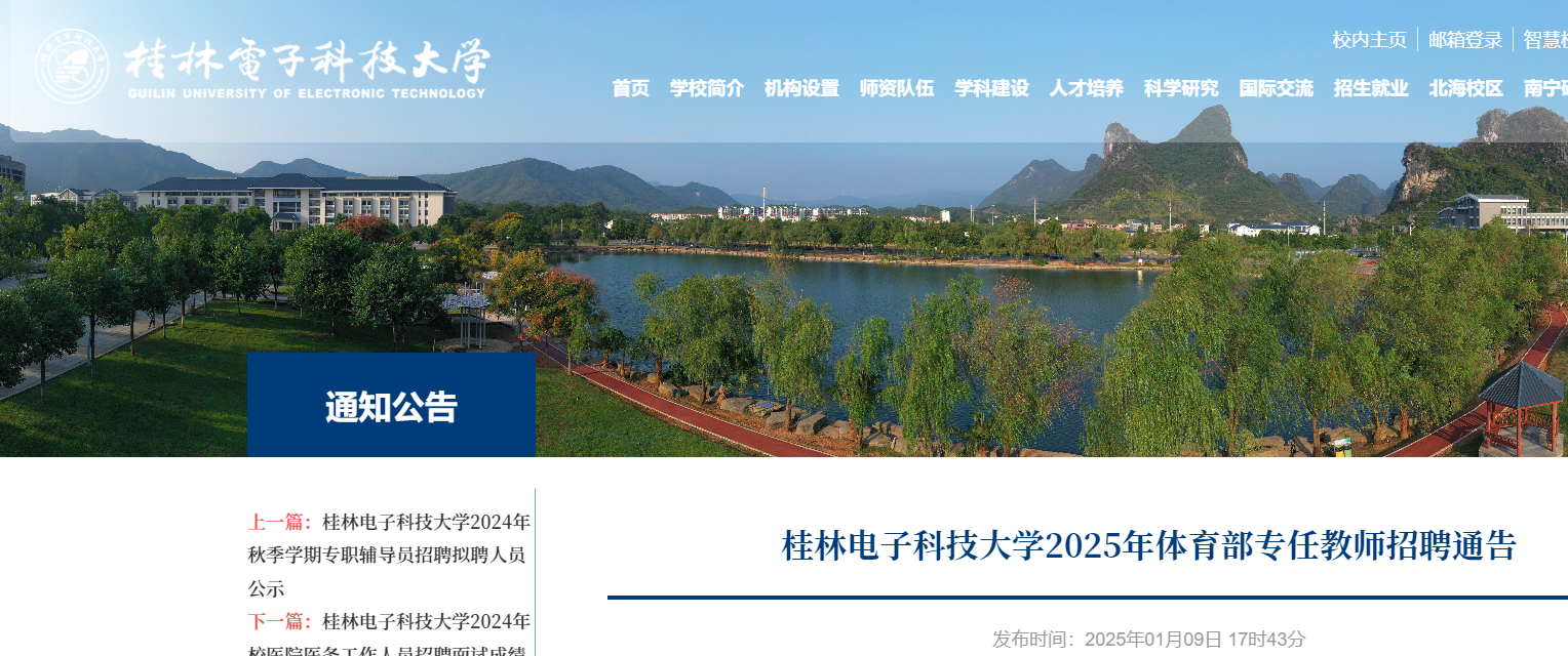 2025年廣西桂林電子科技大學(xué)體育部專任教師招聘通告已發(fā)布,報(bào)名時(shí)間:2025年1月17日17:00前?,F(xiàn)將招聘公告原文發(fā)布如下: