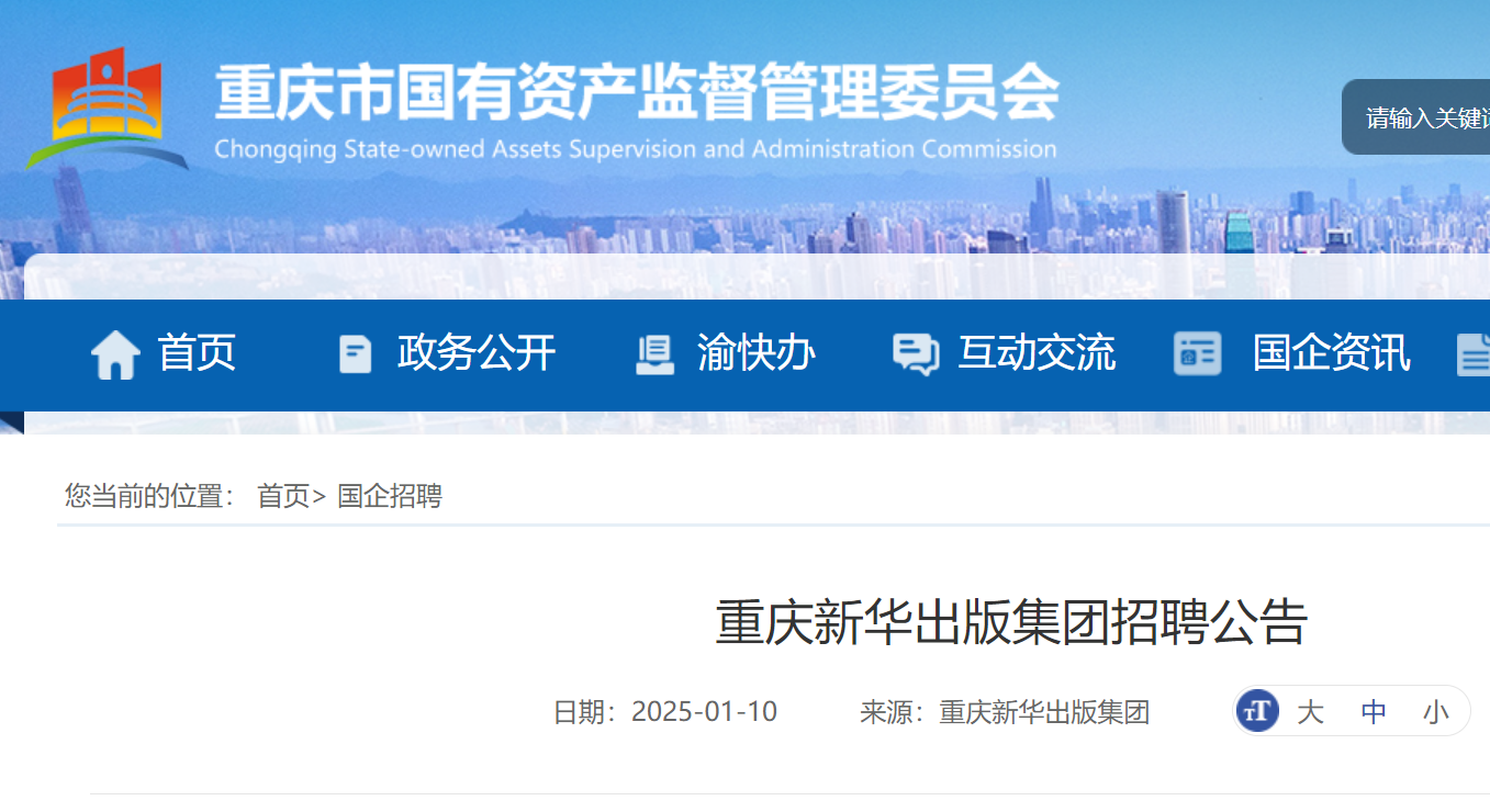 重慶新華出版集團有限公司于2024年由重慶出版集團、重慶新華書店集團、重慶科普文化產(chǎn)業(yè)(集團)三家市屬國有文化頭部企業(yè)整合組建而成的新型出版?zhèn)髅胶臀幕瘎?chuàng)意企業(yè)集團。截至2024年,集團擁有戰(zhàn)略投資部、數(shù)字科技部等職能部門11個,重慶出版社有限責任公司、重慶新華書店有限公司、重慶科普傳媒有限公司等二級企業(yè)4家,資產(chǎn)總規(guī)模162億元,凈資產(chǎn)89億元,職工人數(shù)約5000人。因集團業(yè)務(wù)發(fā)展需要,面向社會公開招聘專業(yè)人才?,F(xiàn)將有關(guān)事宜公告如下: