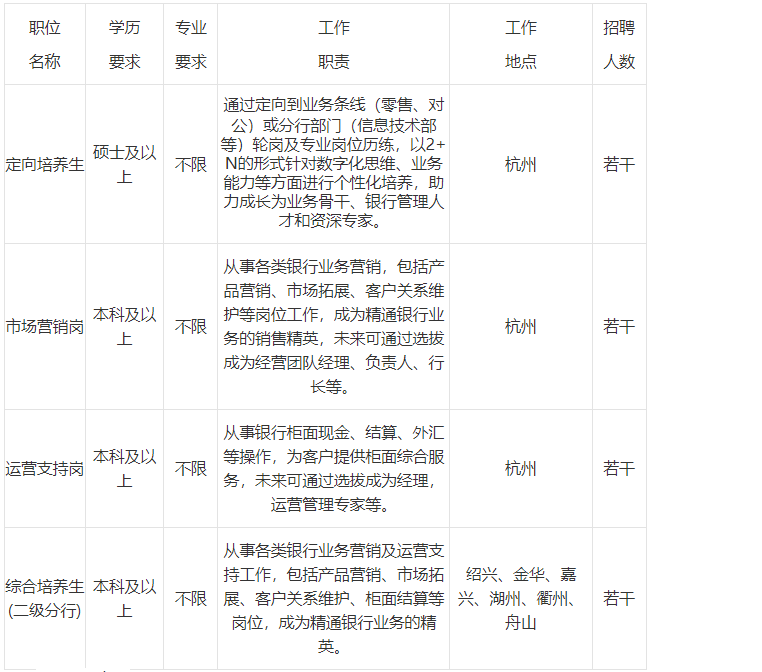 官方微信:關(guān)注“招商銀行招聘”微信公眾號(hào)平臺(tái),點(diǎn)擊“招了-校園招聘”,查看杭州分行及下轄分行招聘崗位并投遞簡歷。