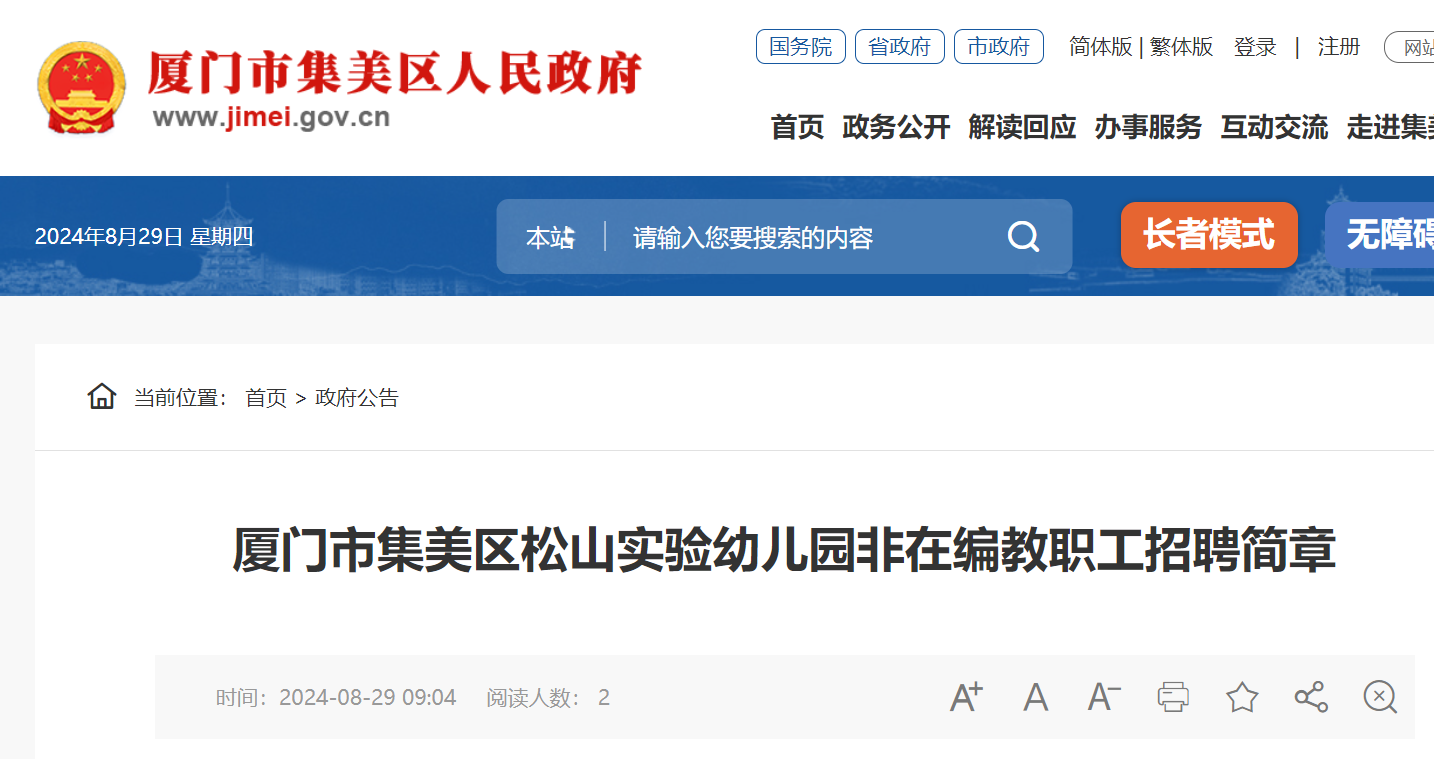 2024福建廈門市集美區(qū)松山實(shí)驗(yàn)幼兒園非在編教職工招聘簡章已發(fā)布,報(bào)名截止日期:8月31日?,F(xiàn)將招聘公告原文發(fā)布如下: