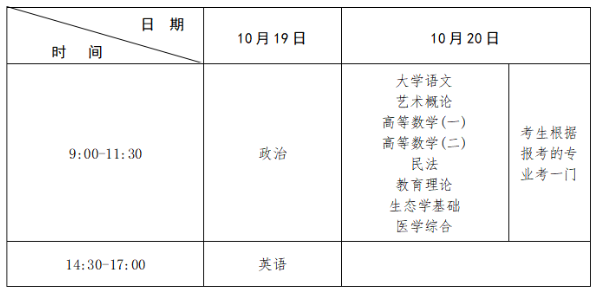 (二)??破瘘c升本科考試統(tǒng)考科目均為三門。其中兩門公共課為政治、英語,一門專業(yè)基礎(chǔ)課根據(jù)招生專業(yè)所隸屬的學科門類確定(具體考試科目見附件3)。