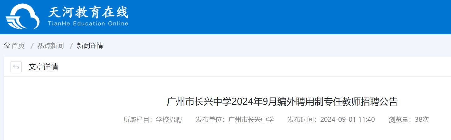 2024年9月廣東廣州市長(zhǎng)興中學(xué)編外聘用制專(zhuān)任教師招聘公告已發(fā)布,網(wǎng)絡(luò)報(bào)名和資格審查時(shí)間:2024年9月3日至2024年9月5日。現(xiàn)將招聘公告原文發(fā)布如下: