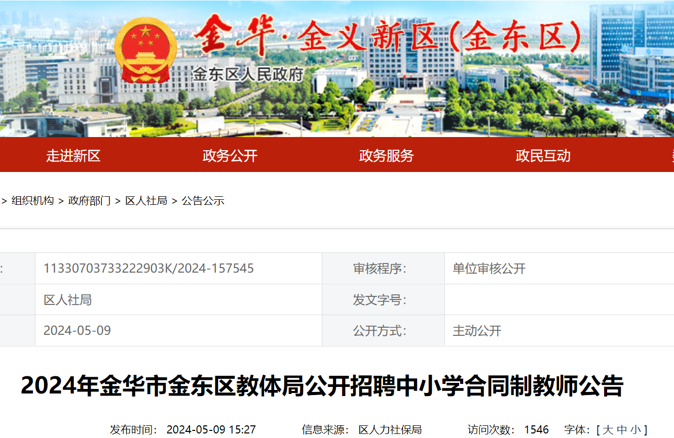 根據(jù)教育事業(yè)發(fā)展和教師隊(duì)伍建設(shè)需要,金東區(qū)教育體育局決定繼續(xù)開展2024年中小學(xué)合同制教師公開招聘工作,現(xiàn)將招聘有關(guān)事項(xiàng)公告如下: