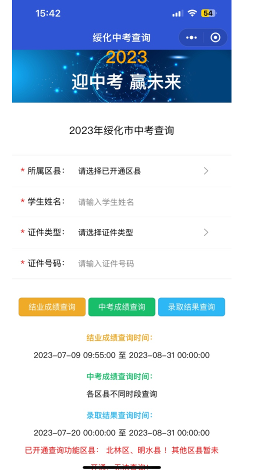 1、網(wǎng)上查詢:考生可登錄2024年黑龍江綏化中考成績查詢網(wǎng)站:綏化市教育局微信公眾號(微信號:shsjyj),輸入考生信息、驗證碼后查詢中考成績。