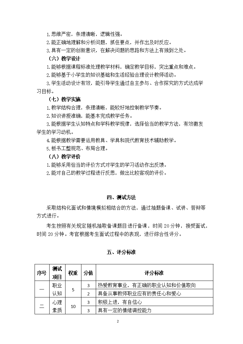 2024上半年小學(xué)教師資格證面試考試時(shí)間:5月11日至12日,申請(qǐng)小學(xué)教師資格的,面試主要考查申請(qǐng)人的職業(yè)認(rèn)知、心理素質(zhì)、儀表儀態(tài)、言語(yǔ)表達(dá)、思維品質(zhì)等教師基本素養(yǎng)和教學(xué)設(shè)計(jì)、教學(xué)實(shí)施、教學(xué)評(píng)價(jià)等教學(xué)基本技能。