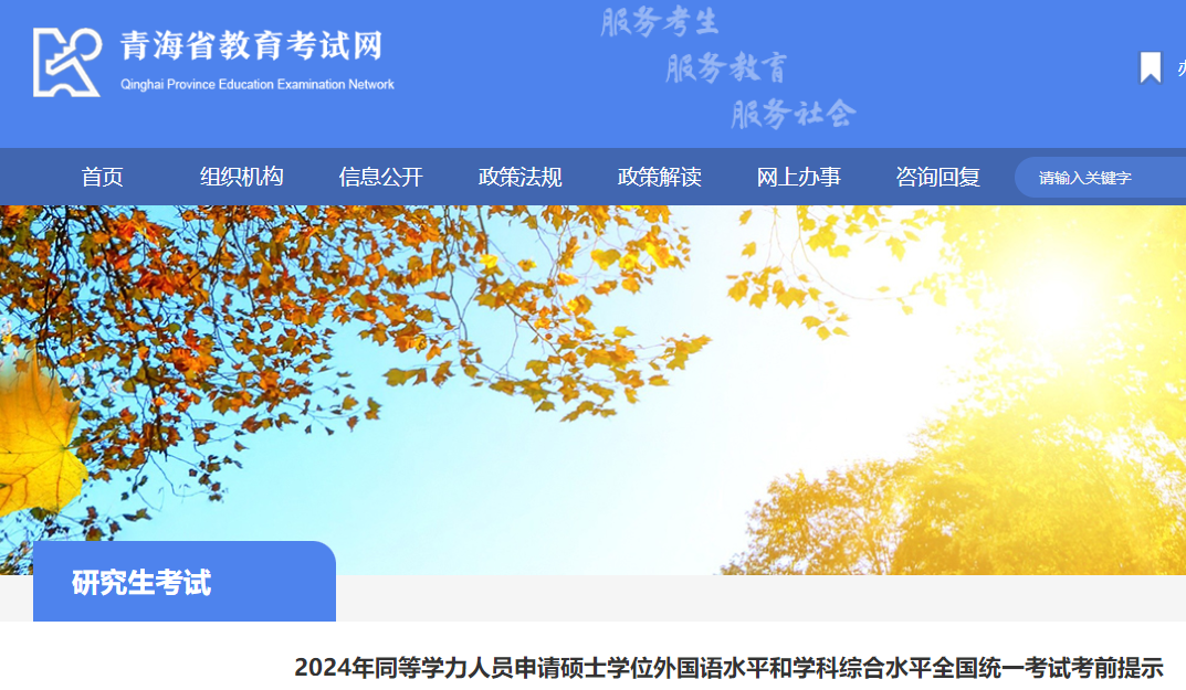 從青海省教育考試網(wǎng)了解到,青海2024年同等學(xué)力申碩士學(xué)位外國語水平和學(xué)科綜合水平全國統(tǒng)一考試考前提示已公布,考試將于5月19日舉行。具體如下:
