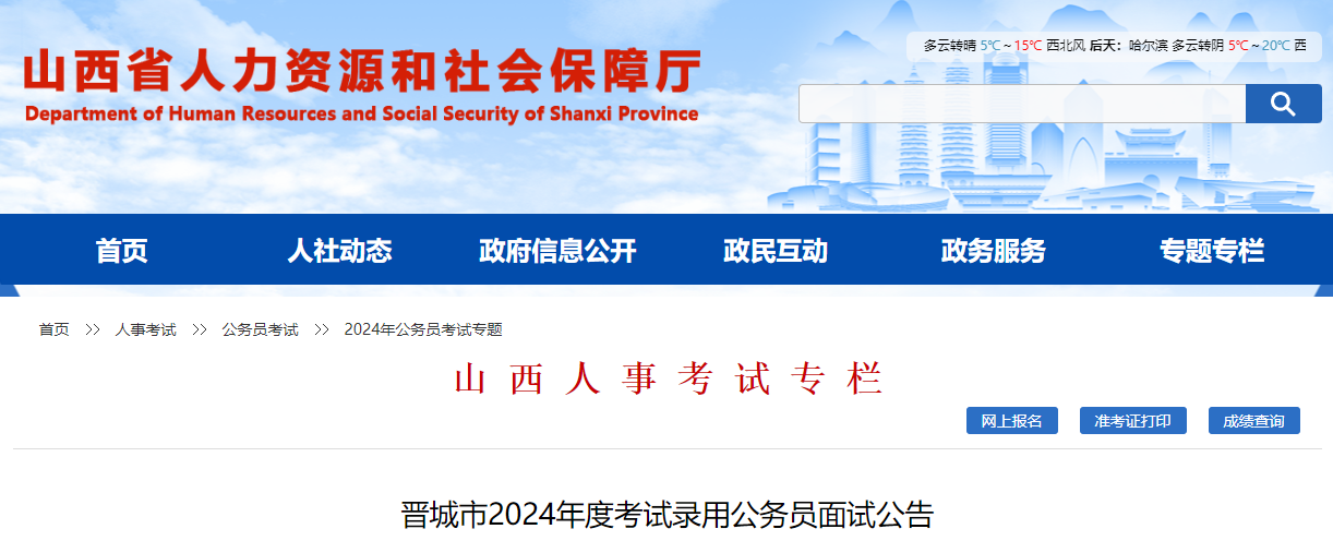 從山西省人力資源和社會(huì)保障廳了解到,2024年山西晉城市考試錄用公務(wù)員面試時(shí)間:5月12日,相關(guān)事宜詳情如下:
