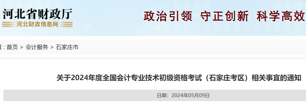 現(xiàn)將2024年度全國會計專業(yè)技術(shù)初級資格考試(石家莊考區(qū))準(zhǔn)考證打印、考點(diǎn)安排等考試相關(guān)事宜通知如下: