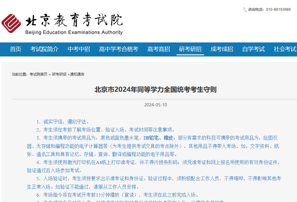 從北京教育考試院獲悉,2024年北京市同等學(xué)力全國(guó)統(tǒng)考考生守則已發(fā)布,請(qǐng)各位考生遵守考生守則,預(yù)祝取得理想成績(jī)。