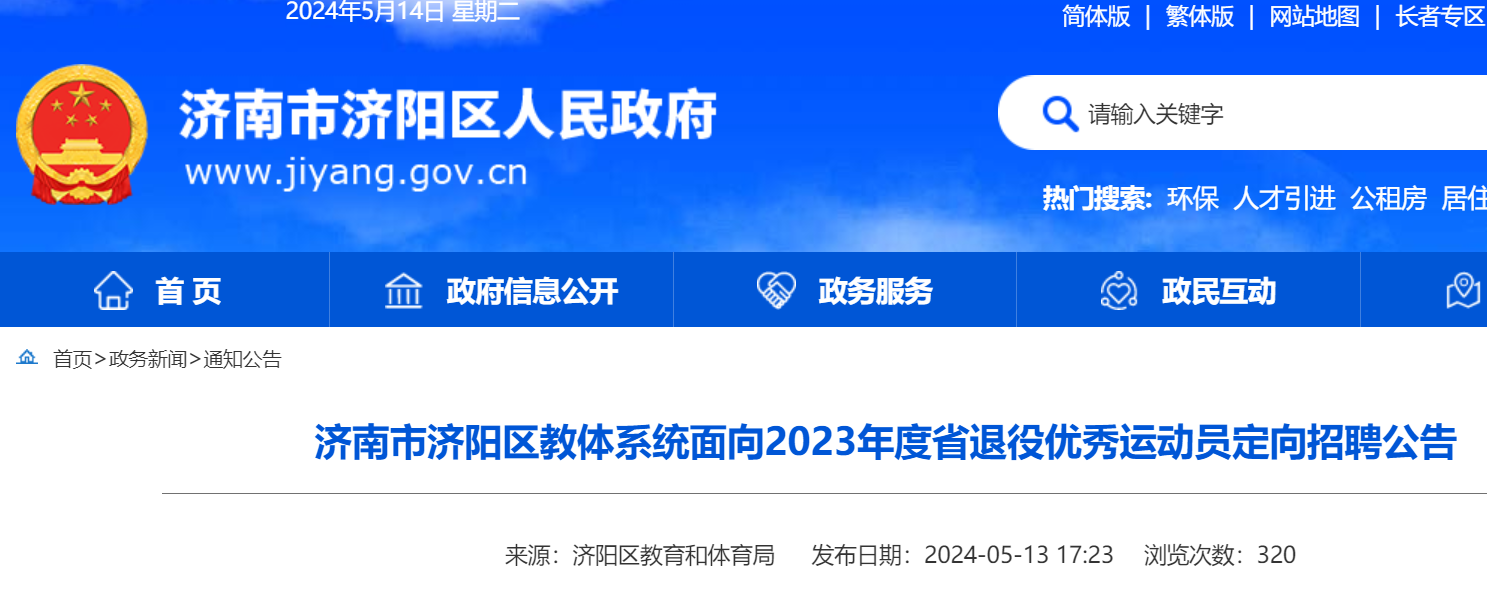 2024年山東濟(jì)南市濟(jì)陽(yáng)區(qū)教體系統(tǒng)面向2023年度省退役優(yōu)秀運(yùn)動(dòng)員定向招聘公告已發(fā)布,報(bào)名時(shí)間:2024年5月21日9:00—17:00?,F(xiàn)將招聘公告原文發(fā)布如下: