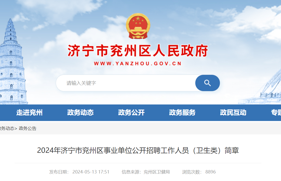 根據(jù)事業(yè)單位公開招聘有關(guān)規(guī)定,結(jié)合事業(yè)單位崗位空缺情況和工作需要,現(xiàn)將2024年濟(jì)寧市兗州區(qū)事業(yè)單位公開招聘工作人員(衛(wèi)生類)有關(guān)事項(xiàng)公告如下: