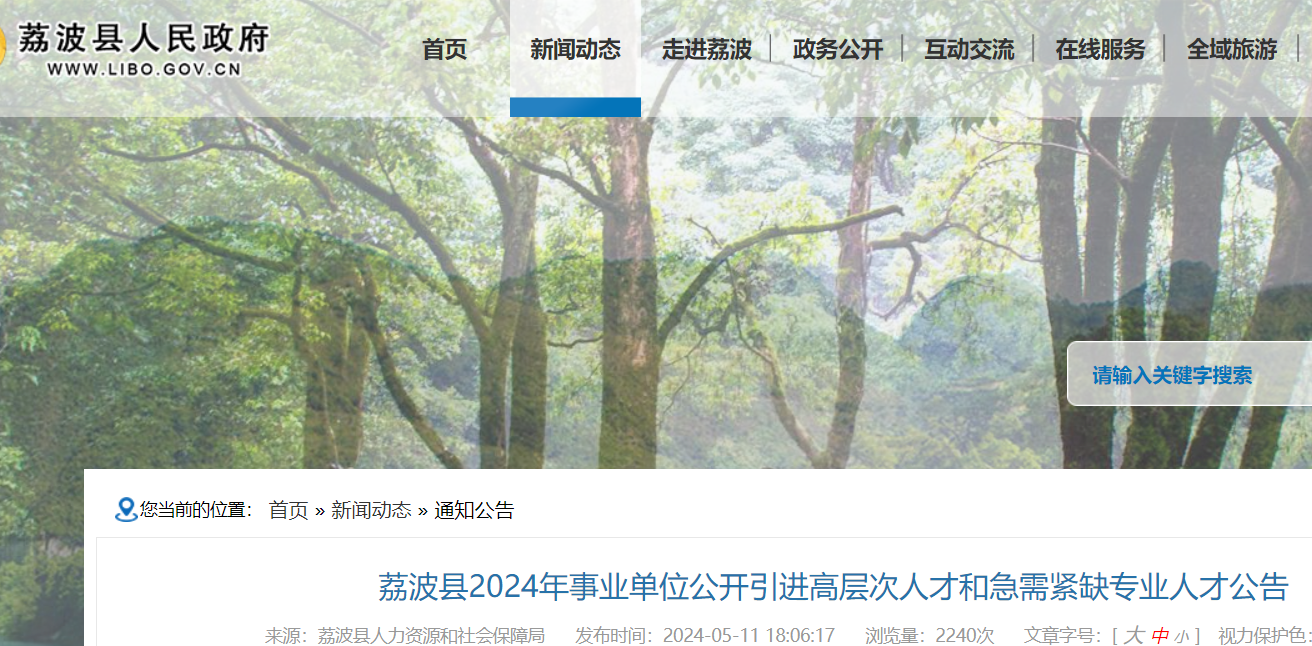 小編根據(jù)貴州省荔波縣人民政府發(fā)布“荔波縣2024年事業(yè)單位公開引進高層次人才和急需緊缺專業(yè)人才公告”得知,2024貴州黔南荔波縣事業(yè)單位人才引進報名時間為2024年5月20日-5月22日。