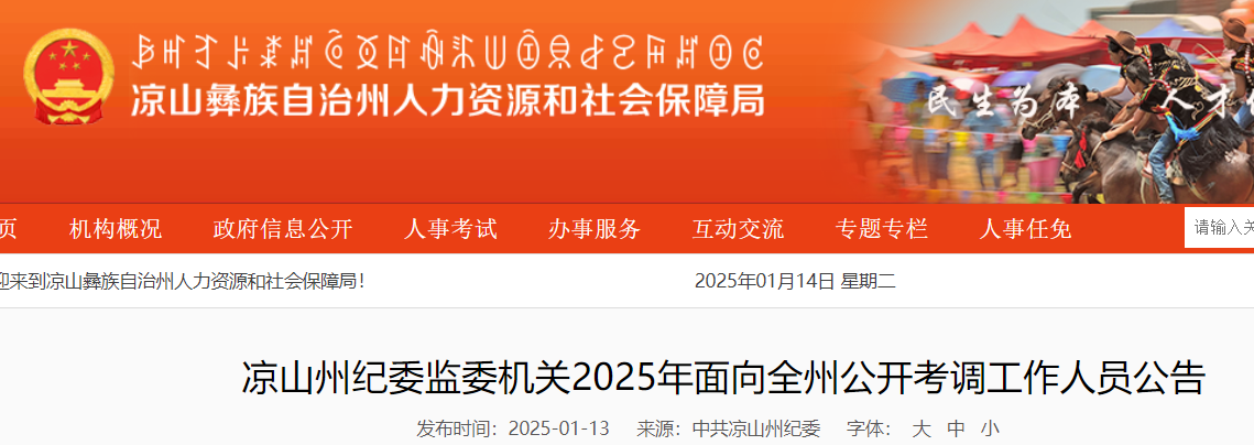 小編根據(jù)中共涼山州紀委發(fā)布”涼山州紀委監(jiān)委機關2025年面向全州公開考調工作人員公告“得知,2025四川涼山州紀委監(jiān)委機關面向全州考調10人,報名時間為2025年1月20日至1月24日。
