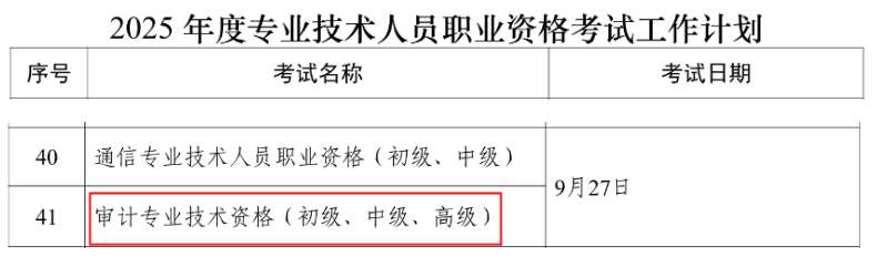 小編根據(jù)中華人民共和國人力資源和社會(huì)保障部發(fā)布“人力資源社會(huì)保障部辦公廳關(guān)于2025年度專業(yè)技術(shù)人員職業(yè)資格考試工作計(jì)劃及有關(guān)事項(xiàng)的通知”得知,西藏2025年審計(jì)師考試時(shí)間安排在2025年9月27日,考試科目如下: