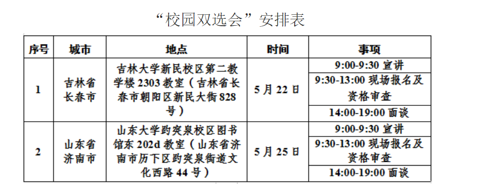 本次“校園雙選會(huì)”共2站,具體見下表。