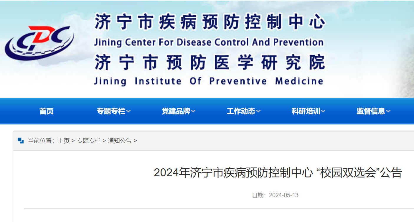 2024年山東濟(jì)寧市疾病預(yù)防控制中心 “校園雙選會(huì)”公告已發(fā)布,網(wǎng)上報(bào)名時(shí)間:2024年5月13日—5月21日?,F(xiàn)將招聘公告原文發(fā)布如下:
