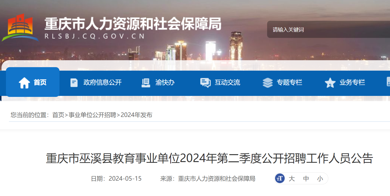 (二)本次招聘的相關事宜在重慶市巫溪縣人民政府網(wǎng)(www.cqwx.gov.cn)—“人事招考”欄公示和發(fā)布,請考生及時關注。