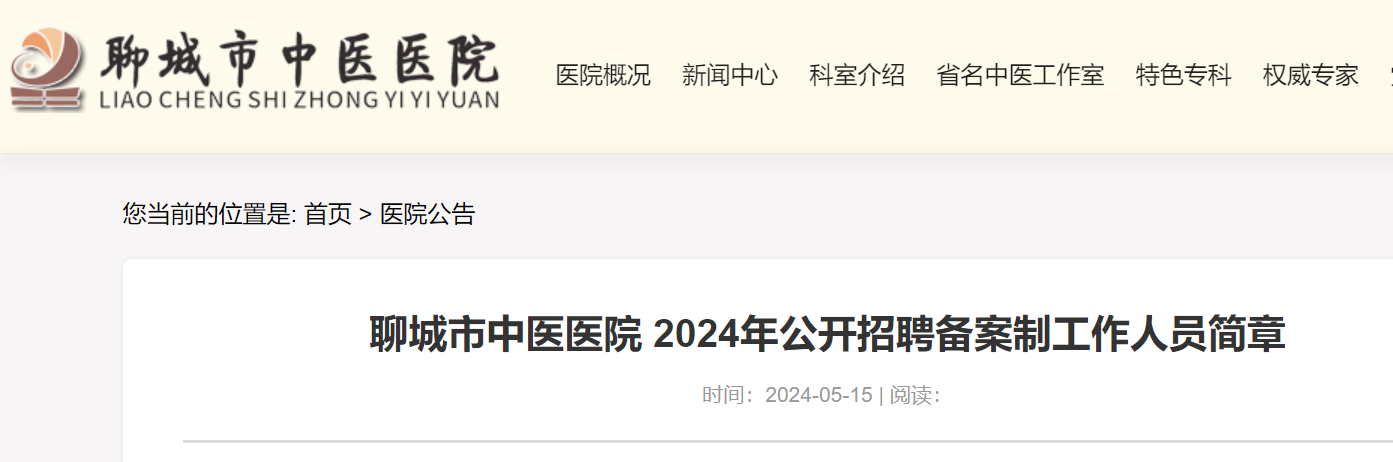 2024年山東聊城市中醫(yī)醫(yī)院公開招聘備案制工作人員簡章已發(fā)布,報名時間:2024年5月23日9:00—5月28日16:00。現(xiàn)將招聘公告原文發(fā)布如下: