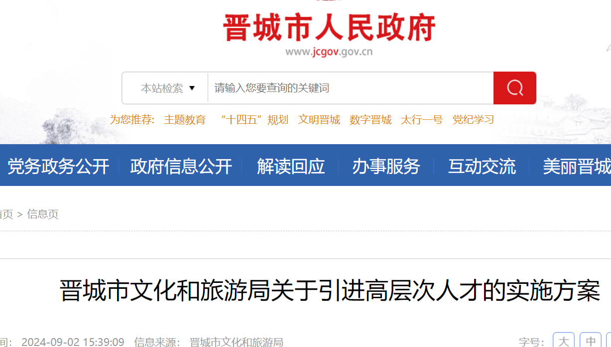 小編根據(jù)晉城市文化和旅游局發(fā)布”晉城市文化和旅游局關(guān)于引進(jìn)高層次人才的實(shí)施方案“得知,2024山西晉城市文化和旅游局引進(jìn)高層次人才6人,報(bào)名時(shí)間為自公告發(fā)布之日起至2024年9月6日18時(shí)截止(公休日除外)。