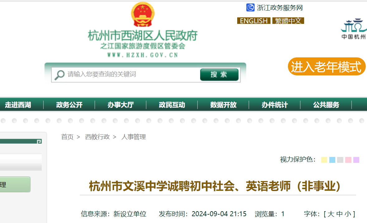 2024浙江杭州市文溪中學(xué)誠(chéng)聘初中社會(huì)、英語(yǔ)老師(非事業(yè)),聯(lián)系地址:杭州市西湖區(qū)春申街15號(hào)?,F(xiàn)將招聘公告原文發(fā)布如下: