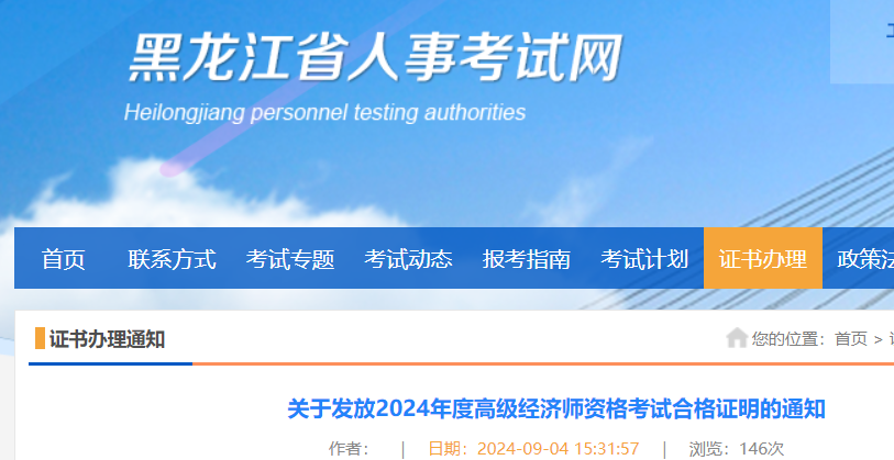 小編根據(jù)黑龍江省人事考試中心發(fā)布“關(guān)于發(fā)放2024年度高級(jí)經(jīng)濟(jì)師資格考試合格證明的通知”得知,黑龍江2024年高級(jí)經(jīng)濟(jì)師考試合格證明發(fā)放時(shí)間為2024年9月5日開始,詳情如下: