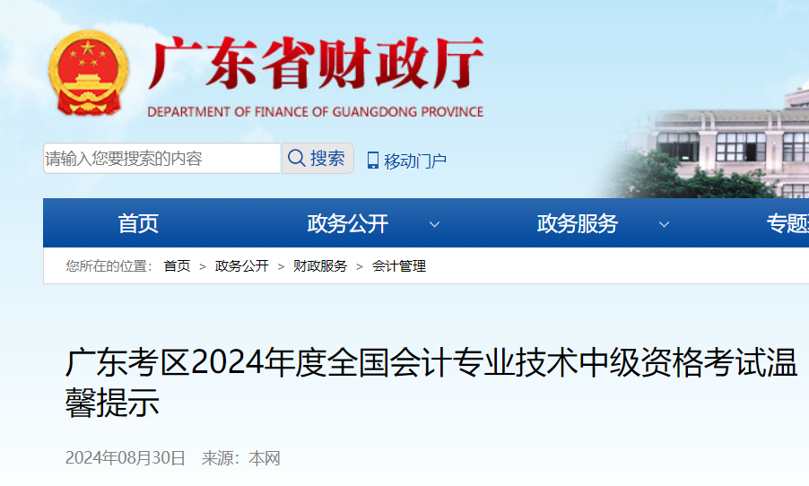 廣東考區(qū)2024年度全國(guó)會(huì)計(jì)專業(yè)技術(shù)中級(jí)資格考試將于9月7日至9日舉行。為幫助考生做好考試準(zhǔn)備,現(xiàn)將有關(guān)事項(xiàng)提示如下: