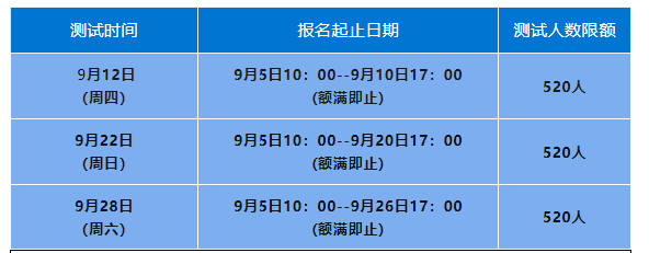 (一)計劃開放的測試場次及報名時間: