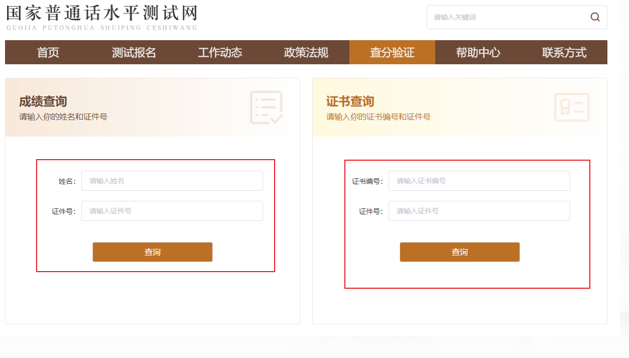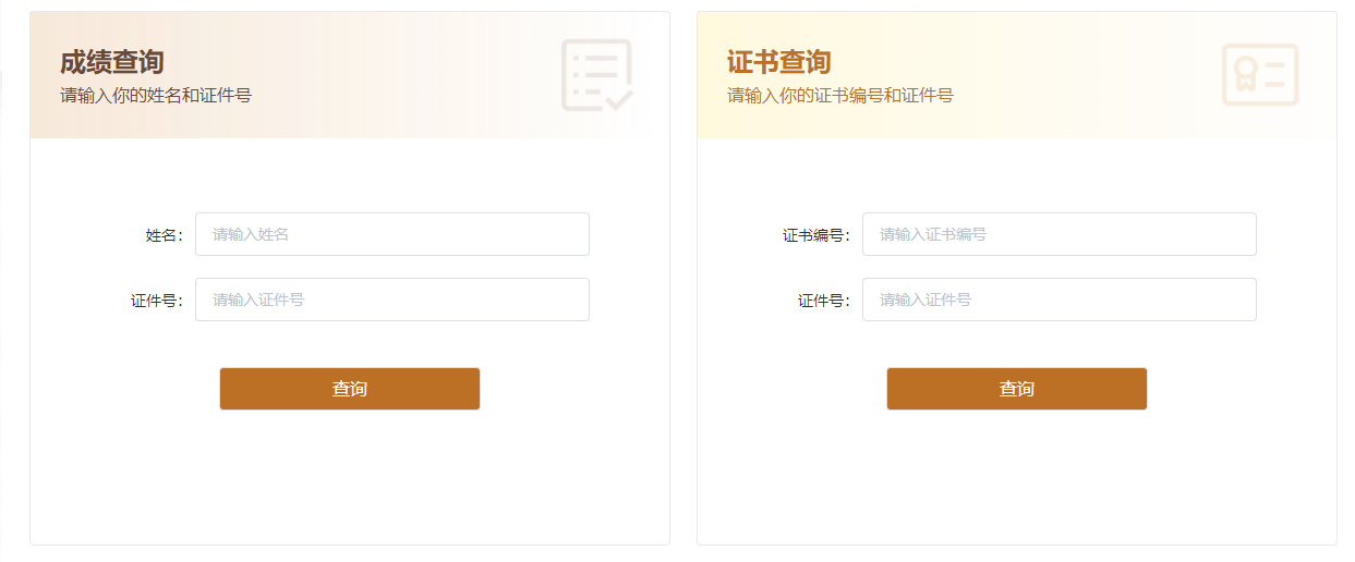 3、輸入姓名、證件號(hào)等查詢成績(jī)或證書(shū)。