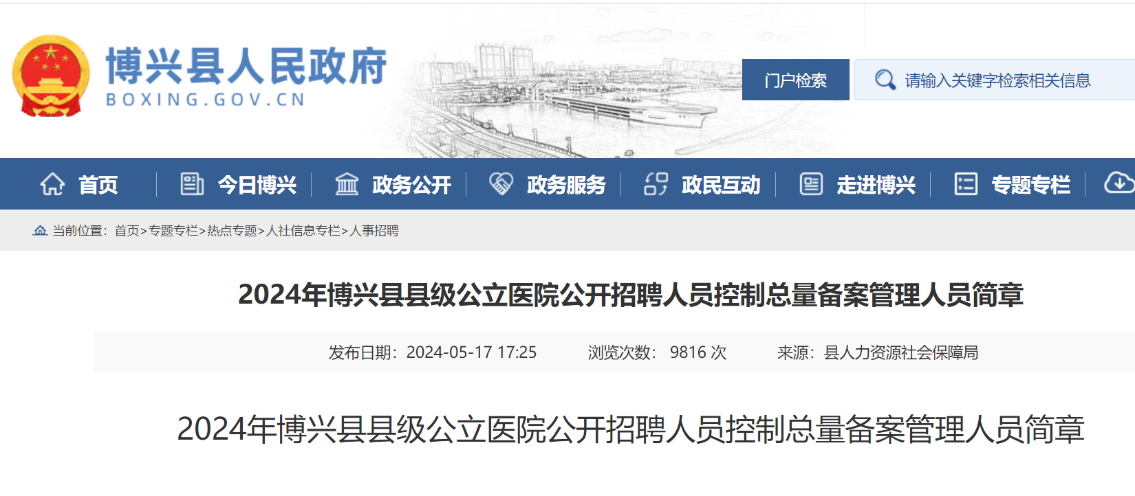 根據(jù)事業(yè)單位公開招聘有關(guān)規(guī)定,結(jié)合博興縣縣級公立醫(yī)院崗位空缺情況和工作需要,現(xiàn)將2024年博興縣縣級公立醫(yī)院公開招聘人員控制總量備案管理人員有關(guān)事項(xiàng)公告如下: