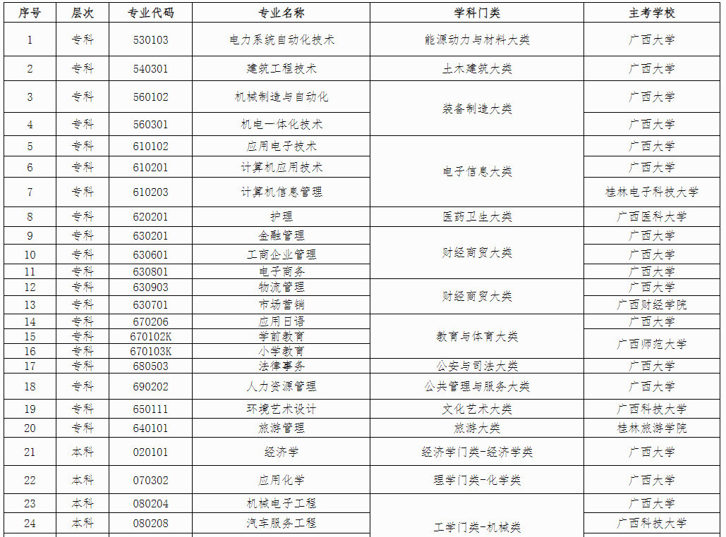 從廣西招生考試院了解到,廣西自學(xué)考試電力系統(tǒng)自動(dòng)化技術(shù)等36個(gè)專業(yè)??挤桨敢压迹唧w如下: