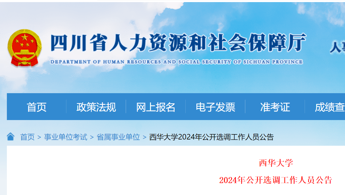 2024年四川西華大學(xué)公開選調(diào)工作人員公告已發(fā)布,報名時間為2024年5月29日10:00至6月2日18:00?,F(xiàn)將招聘公告原文發(fā)布如下: