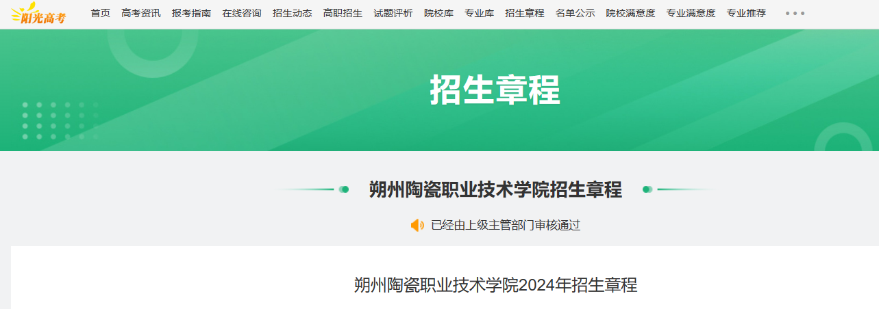 從陽光高考平臺(tái)獲悉,2024年山西朔州陶瓷職業(yè)技術(shù)學(xué)院招生章程已發(fā)布,提醒各位考生認(rèn)證閱讀招生章程,選擇適合的專業(yè)報(bào)考。