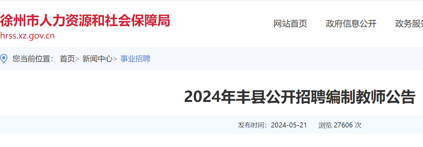 2024年江蘇徐州豐縣公開(kāi)招聘編制教師公告已發(fā)布,報(bào)名時(shí)間:2024年5月27日09:00-5月31日17:00?,F(xiàn)將招聘公告原文發(fā)布如下: