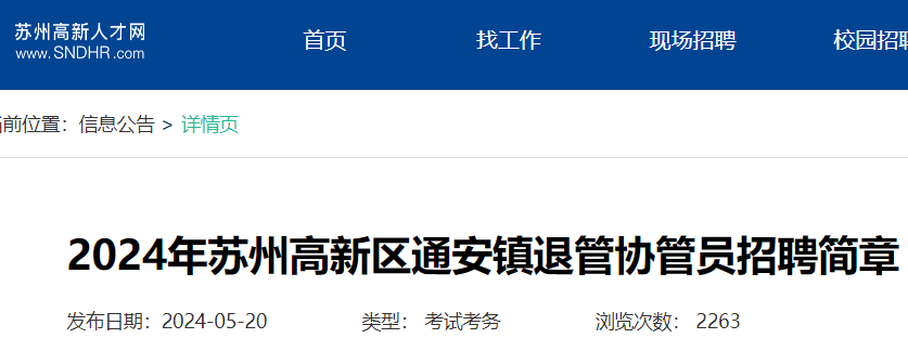 小編根據(jù)州高新區(qū)人才網(wǎng)發(fā)布“2024年蘇州高新區(qū)通安鎮(zhèn)退管協(xié)管員招聘簡章”得知,2024江蘇蘇州高新區(qū)通安鎮(zhèn)退管協(xié)管員招聘8人,報名時間為2024年5月20日-5月24日。